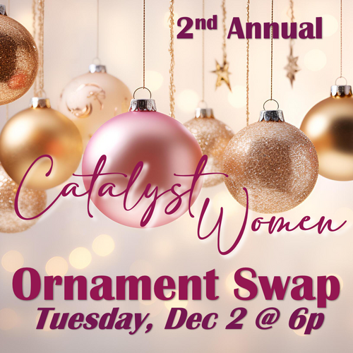 This night is a celebration and time of connection. Our 2nd Annual ORNAMENT SWAP is set for December 2nd at 6p in the Catalyst Cafe. Bring a dish and an ornament to swap. Sign-ups will start in November. See Christie Pickard or Amy Moman if you would like to help with this event.